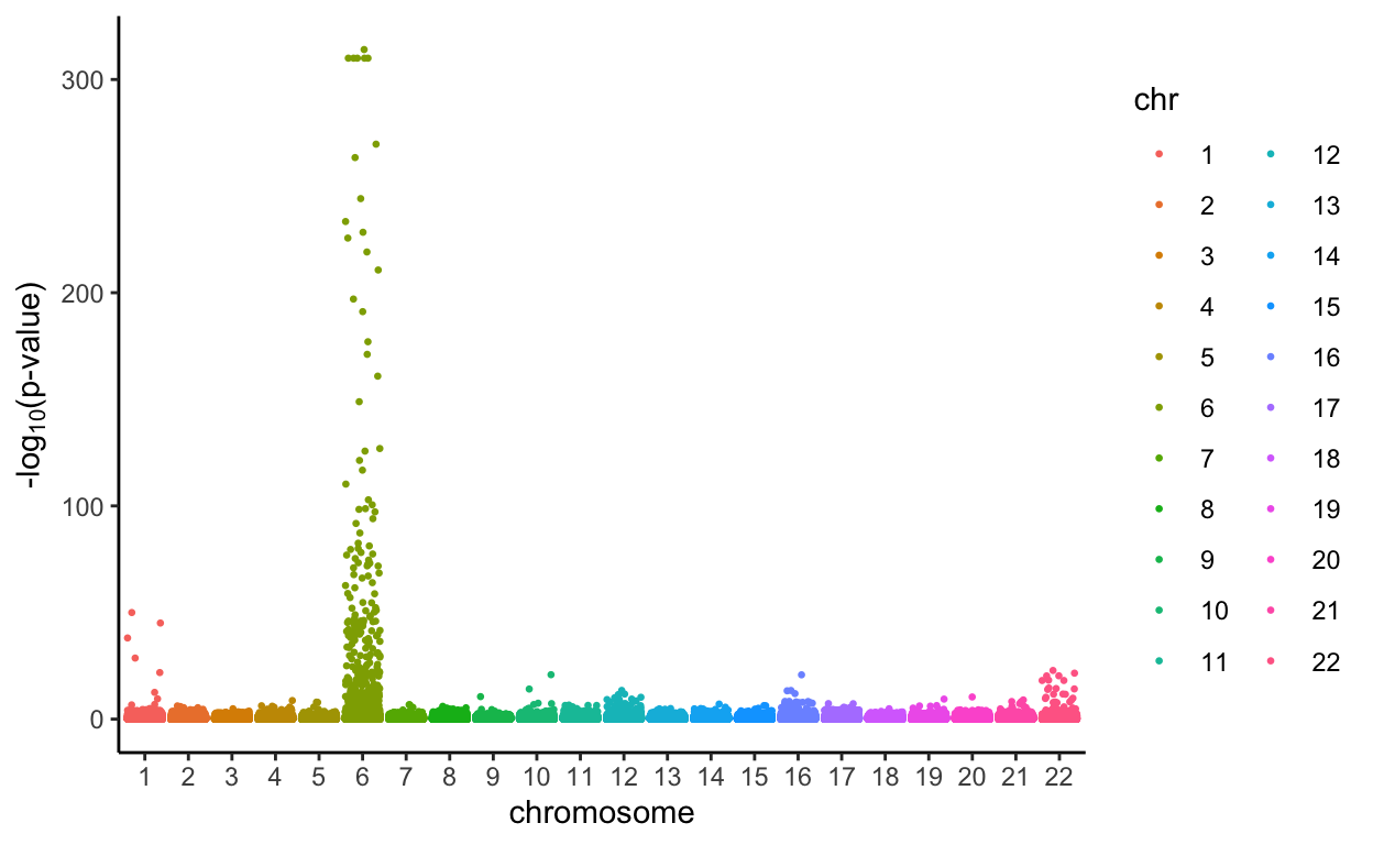 labs(x = 'chromosome', y = expression(paste('-log'[10],'(p-value)'))) +