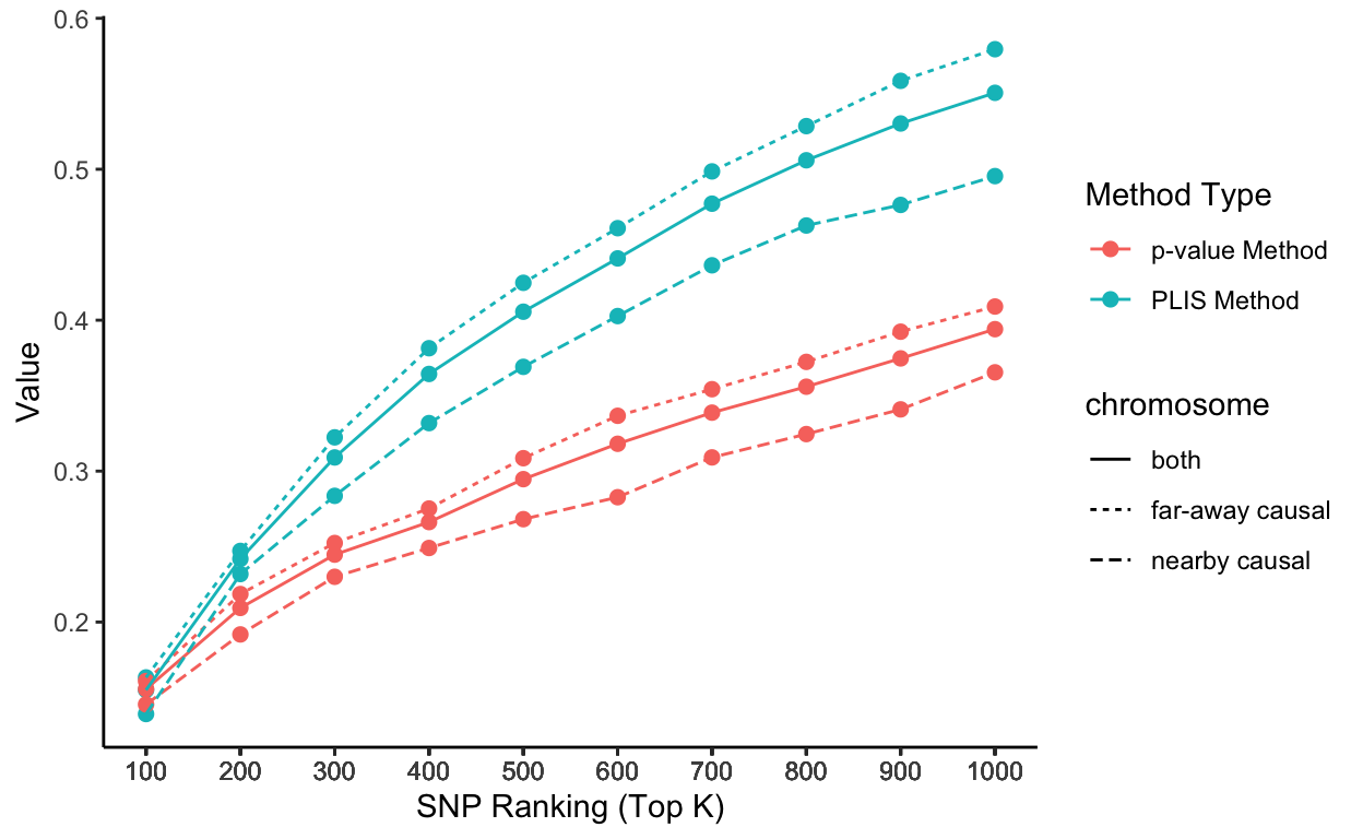 labs(x = 'SNP Ranking (Top K)', y = 'Value', color = 'Method Type', lty = "chromosome") +